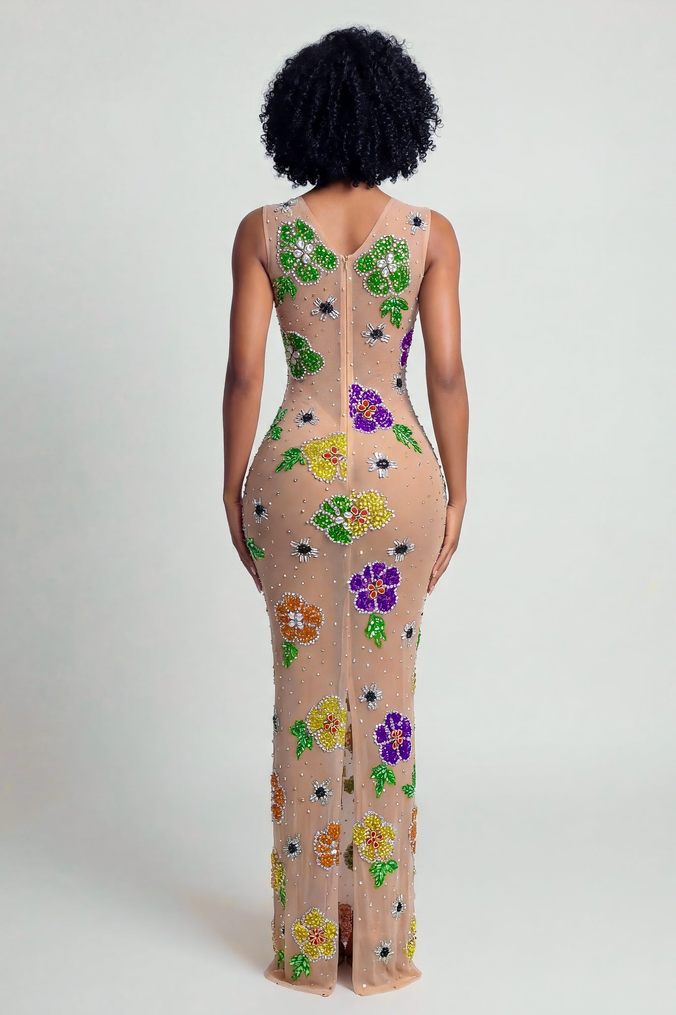 Twirl through any occasion in our Flora maxi dress, where vibrant floral patterns meet eye-catching sparkle. The delicate mesh overlay catches the light beautifully, creating an enchanting shimmer with every movement. Perfect for those who want to make a statement without sacrificing elegance, this dress combines romantic florals with modern glamour. The flowing maxi silhouette flatters all figures while the shimmering details ensure you'll turn heads wherever you go.