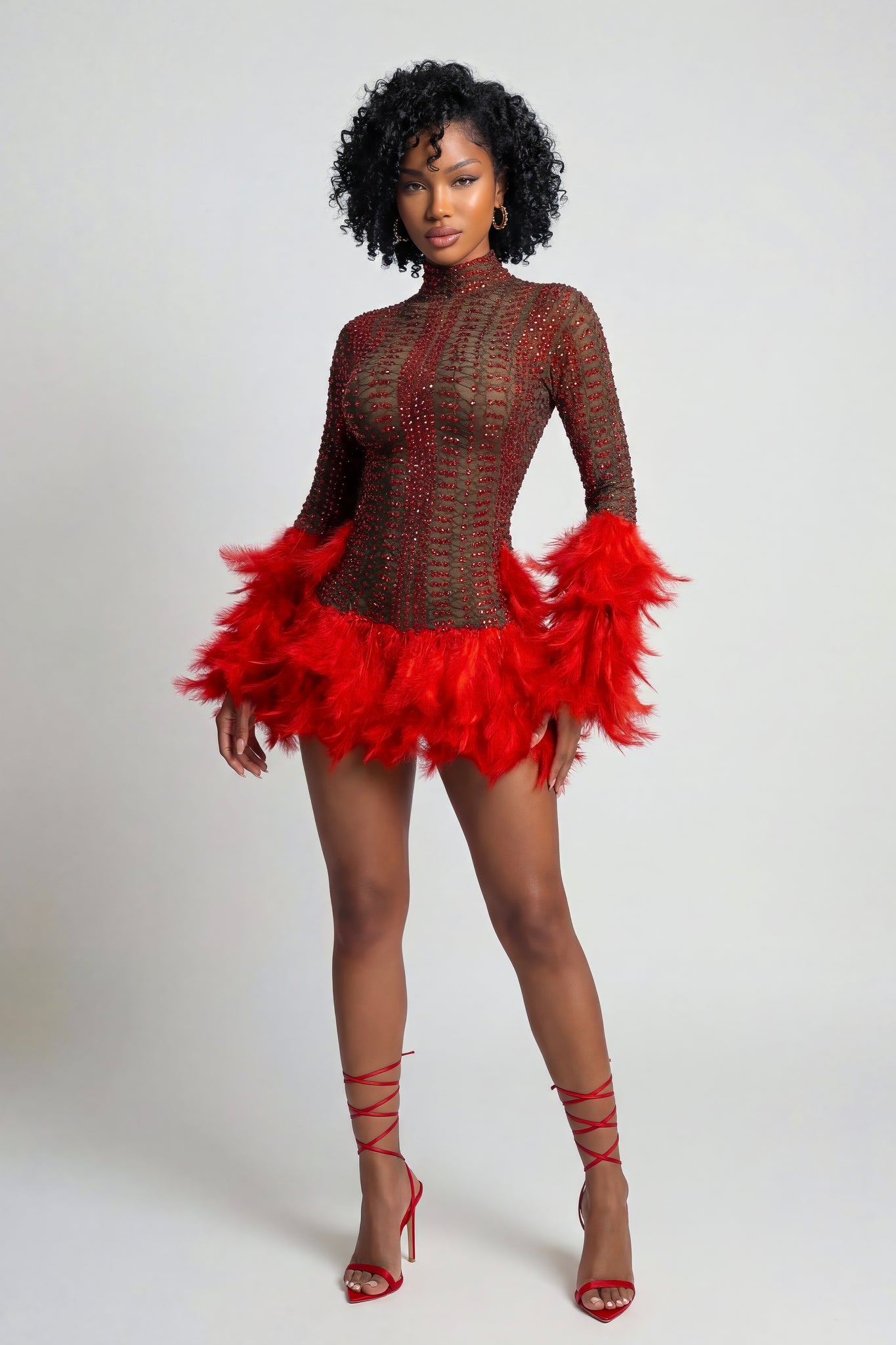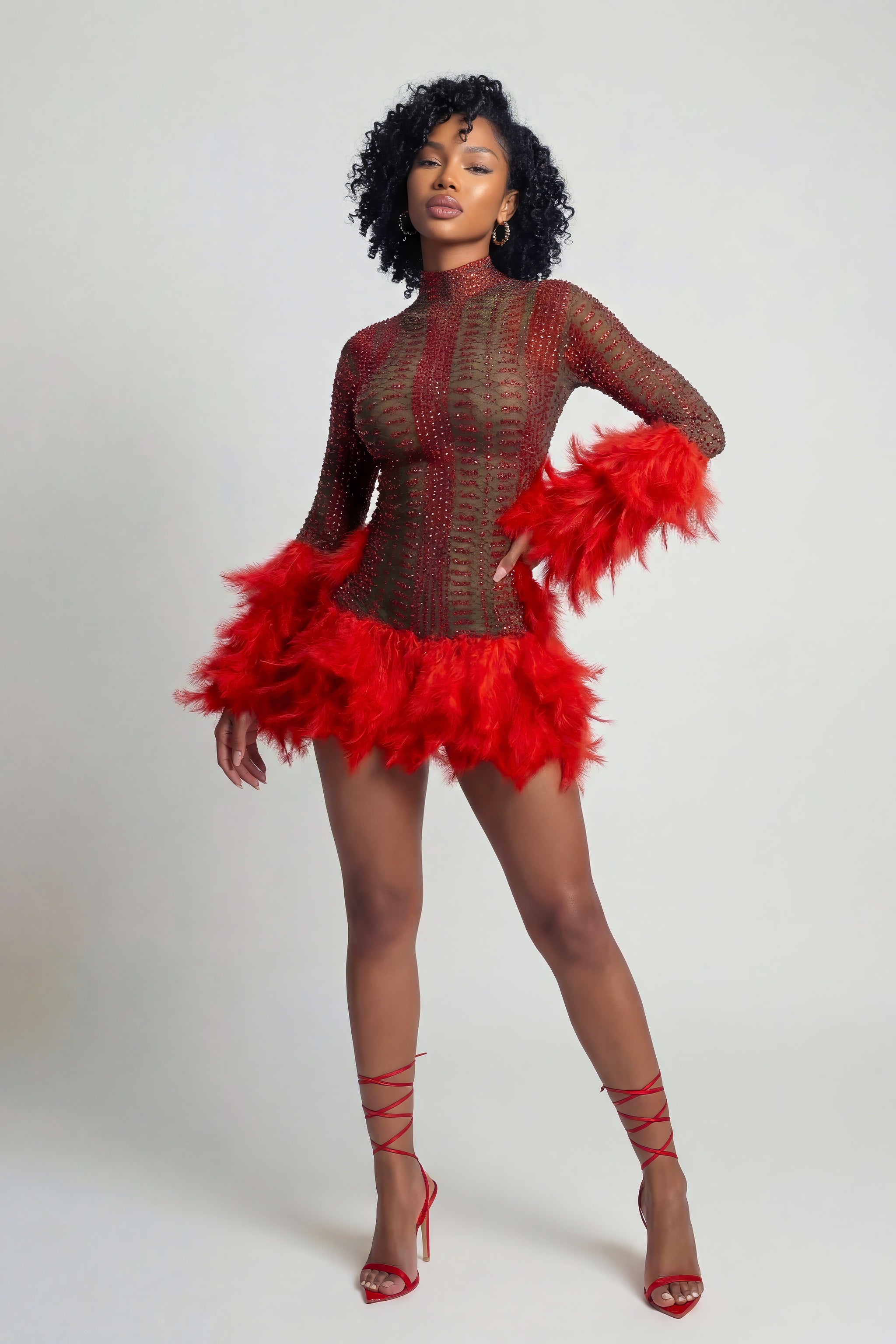 Introducing Selena—a daring piece that celebrates confidence and allure. This stunning design features delicate feathering that catches the light beautifully, while sheer transparency creates an irresistibly bold aesthetic. Perfect for those moments when you want to make a statement and feel absolutely captivating. Selena transforms any occasion into an opportunity to showcase your fearless style and undeniable presence.